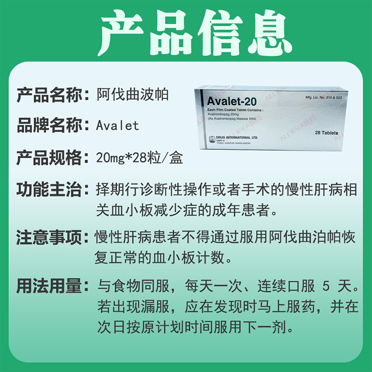 孟加拉耀品国际阿伐曲泊帕20mg*28粒(约合人民币750元)
