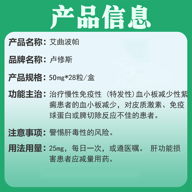 卢修斯版艾曲波帕50mg*28粒(约合人民币500元) 数量