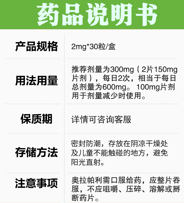 奥拉帕利2mg*30粒(约合人民币1300元) 数量