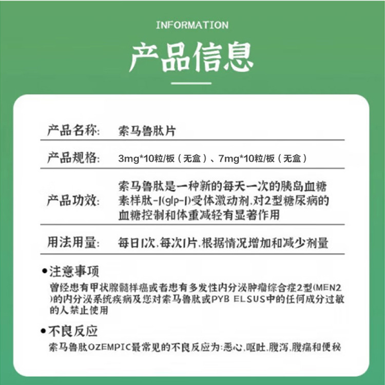 日版司美格鲁肽7mg*10粒/板(无盒装)(约合人民币330元)
